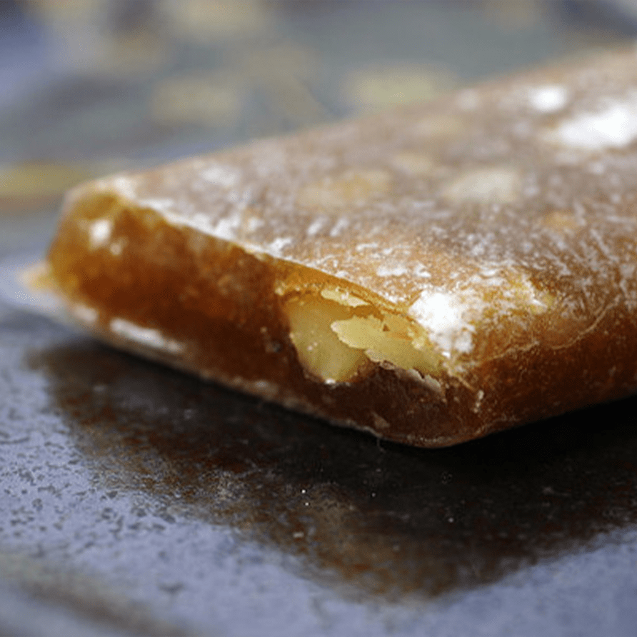 クルミ餅 原材料 水飴、砂糖、パラチノース、小麦粉、くるみ、もち粉、あん、醤油(大豆を含む)、オブラート(澱粉)/炭酸Ca 栄養成分[1本(40g)あたり] エネルギー 145kcal たんぱく質 1.6g 炭水化物 27g 脂質 3.4g 食塩相当量 0.1g 塩餅 原材料 水飴、砂糖、パラチノース、小麦粉、くるみ、食塩、もち粉、あん、オブラート(澱粉)/炭酸Ca(一部に小麦・くるみ・大豆を含む) 栄養成分[1本(40g)あたり] エネルギー 149kcal たんぱく質 1.5g 炭水化物 27.8g 脂質 3.5g 食塩相当量 0.9g 甘酒餅 原材料 水飴、砂糖、パラチノース、小麦粉、酒粕、くるみ、麦芽糖、もち粉、あん、食塩、オブラート(澱粉)/炭酸Ca 栄養成分[1本(40g)あたり] エネルギー 156kcal たんぱく質 1.9g 脂質 3.1g 炭水化物 30.0g 食塩相当量 0.1g