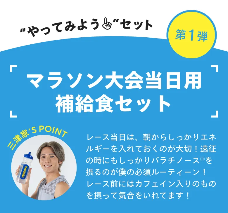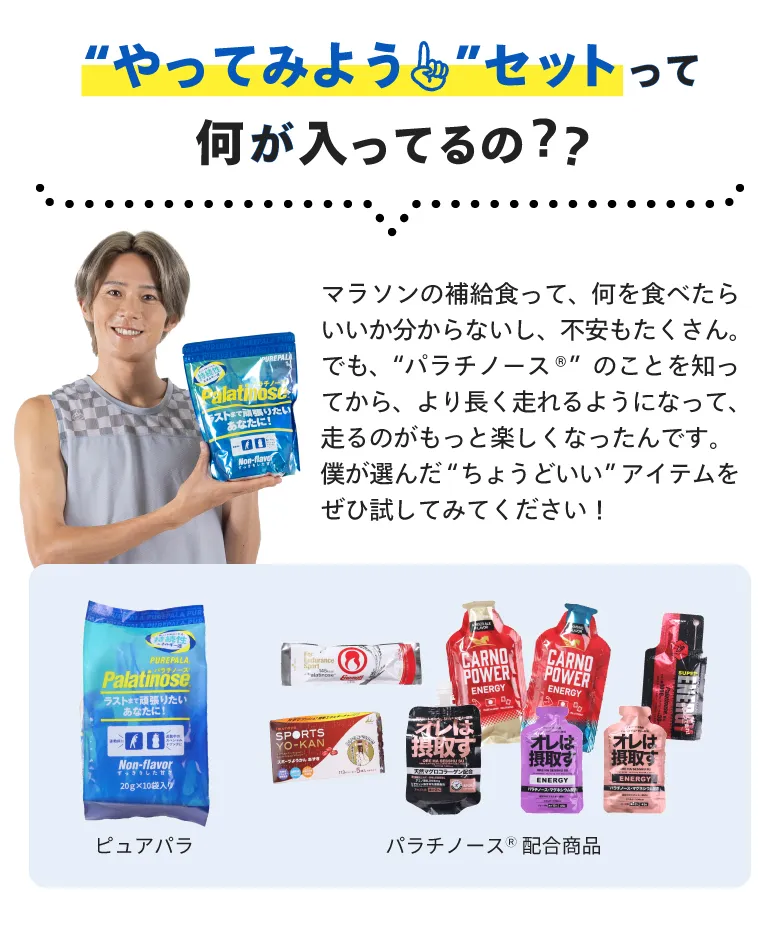 人気インフルエンサーの三津家貴也さんが選んだ、パラチノース配合商品のオススメセットです。 日々のトレーニング前の栄養補給に是非おためしください。